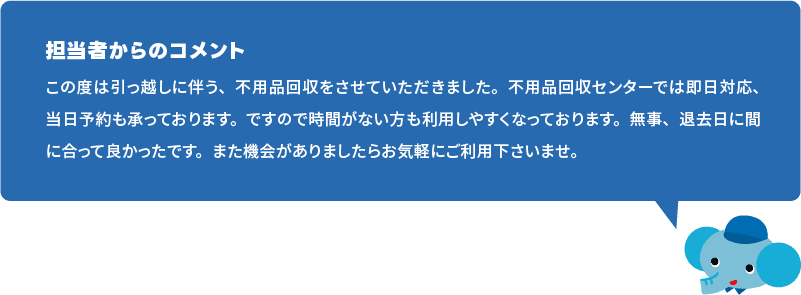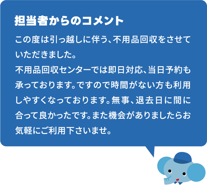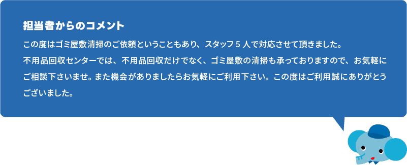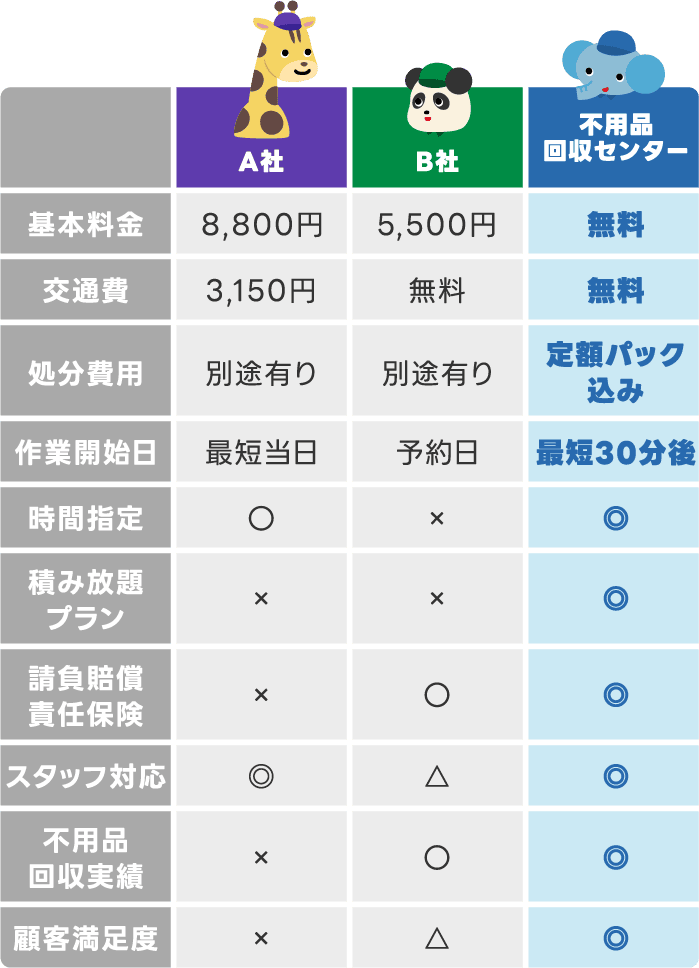 ※特定家電リサイクル品・PC機器・スプリングマットレス・危険物(ガス缶、着火装置など)は個別対応となります。